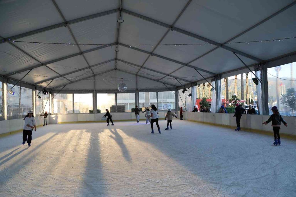 sonu 10.00–22.00 saatleri arasında açık olan buz pisti, yeni yıl atmosferini kent genelinde